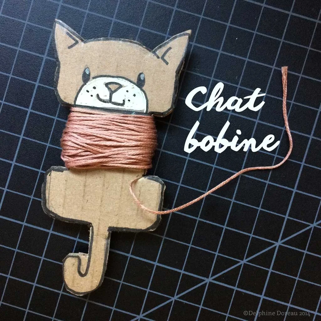 Où je passe une bonne matinée à tout faire sauf mettre la petite tunique japonaise beige que j'ai achetée pendant une escapade avec mes meilleurs copines, mais je suis, semble-t-il, ces jours-ci, la reine de la digression spontanée. En attendant, voici un petit modèle de bobine ( n'oubliez pas une encoche pour coincer le fil) à recopier/coller sur du carton pour broder en compagnie feline...
