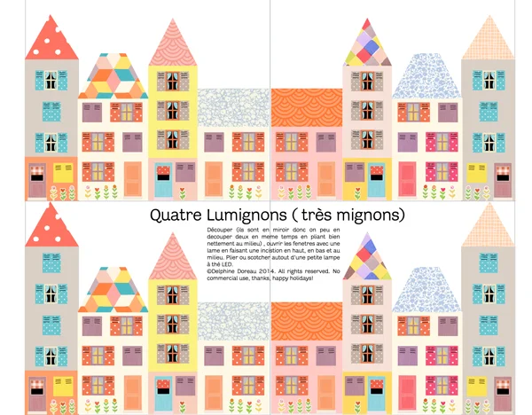 Last surprise before midnight! Here are little lanterns for your desktop. Click on the picture to download! Cut out and fold around a LED light.