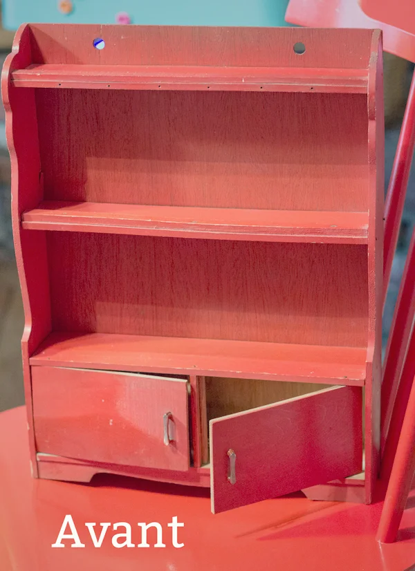 J'ai une jolie collection de kokeshi, mais elles étaient un peu dispersées dans l'atelier...Je collectionne depuis longtemps ces petites demoiselles, un vieux rêve très compliqué en France, qui s'est révélé beaucoup plus abordable ici, aux portes du Pacifique. J'en ai quelques unes qu'on m'a offerte et qui me sont d'autant plus précieuses, il leur fallait un coin bien défini. J'ai finalement trouvé une étagère à épices sur Etsy, et me souvenant d'une armoire que ma Mamette avait peinte, je lui ai donné un petit coup de pouce "folk". Maintenant on dirait une armoire de poupée, c'est plus approprié!