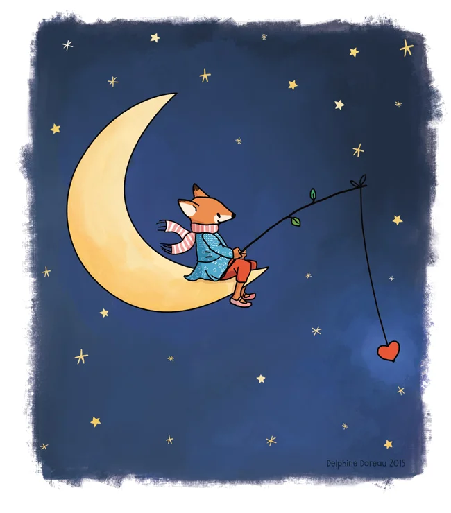 My friend was talking about the Ste Chapelle yesterday, a church in Paris with a beautiful stared sky pattern. I just had made this pretty fox for a special occasion, and I was very tempted to mix the two ideas : a cute fox and a blue sky. So I played with it, and my dearest came and saw it, and said " That's a nice pattern for our greeting card this year".