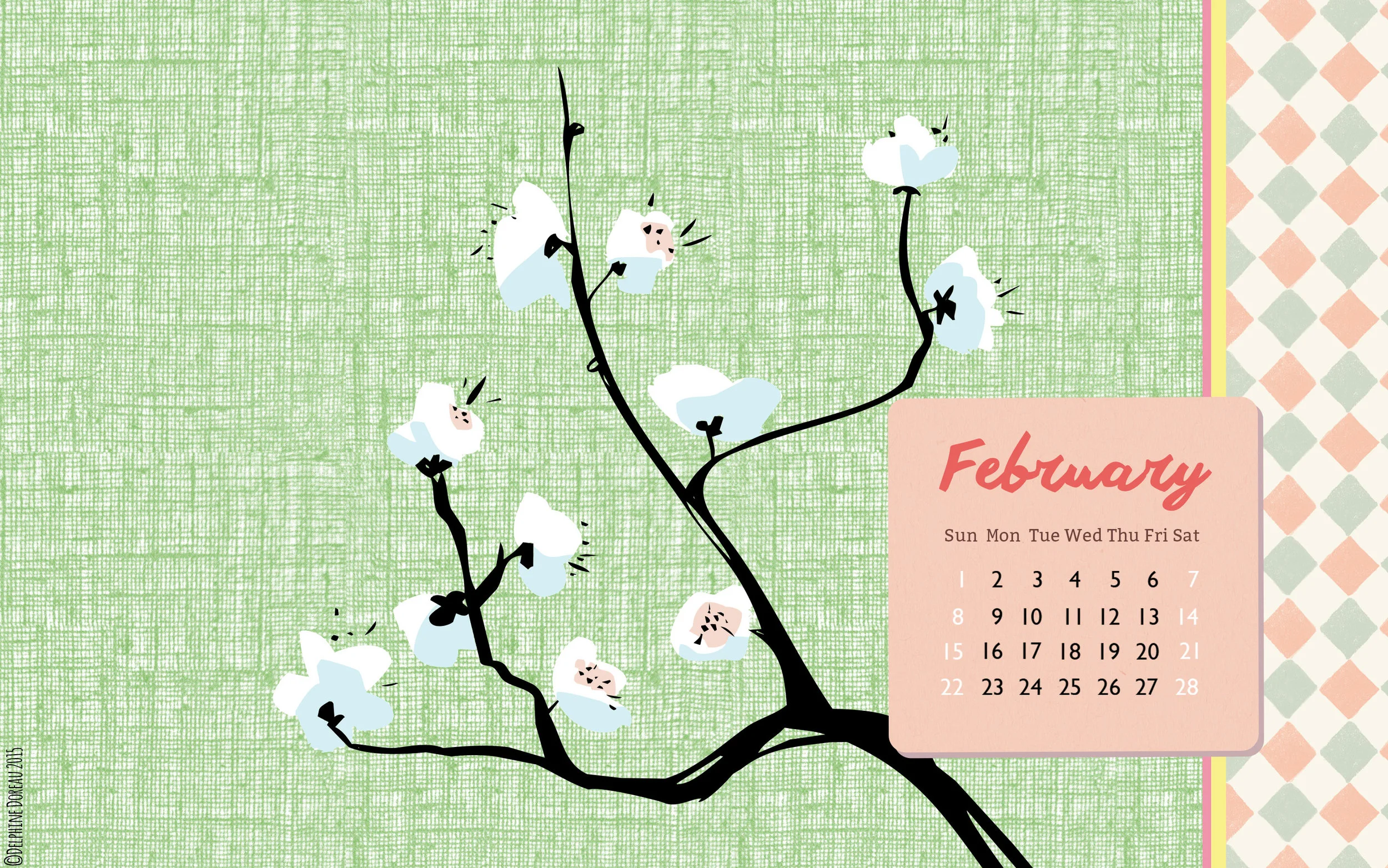 Un petit air de printemps pour Février, un rayon de soleil pour votre clavier, histoire de faire venir plus vite les premiers bourgeons...Je me suis amusée à imaginer un calendrier mid-century d'inspiration Japonaise, histoire de fêter ma onzième année sur les bords du Pacifique!