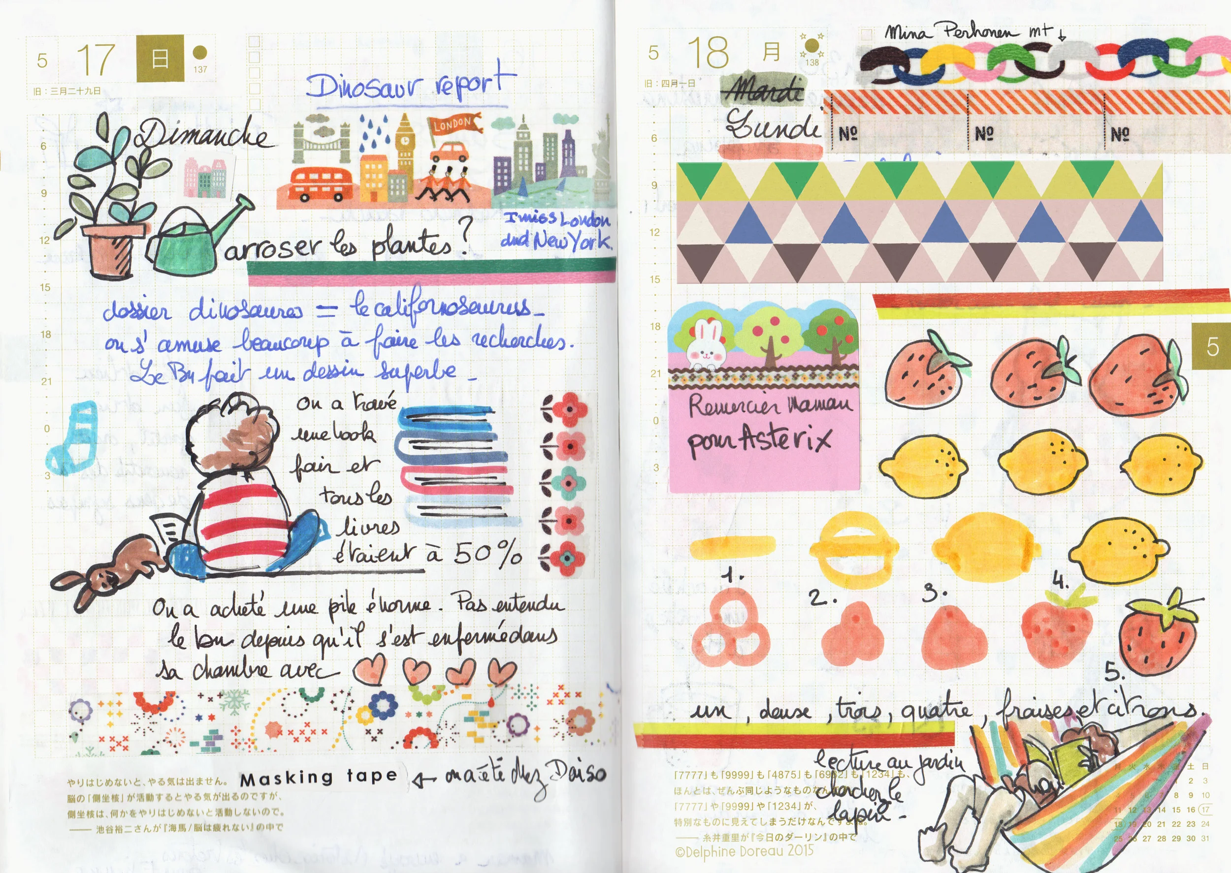 Je me suis remise, récemment , à noter les événement heureux de la journée , et à gribouiller dans mon Hobonichi Techo ( vous allez finir par croire que je leur fait de la pub, mais non) . C'est très libérateur , une jolie façon de me rappeler comme nous sommes heureux, et d'en garder une trace.