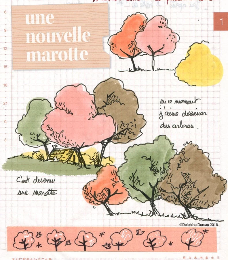 Parmi ces nouvelles envies, une vieille marotte : dessiner des arbres. C'est compliqué un arbre, pas d'angle, pas de plan, pas de surface...mais c'est aussi une des choses que je préfère sur cette planète, un grand être vivant et silencieux, une des merveilles du monde, qui est aussi un écosystème. Donc je me suis mise à en gribouiller partout...tiens, une nouvelle manie!