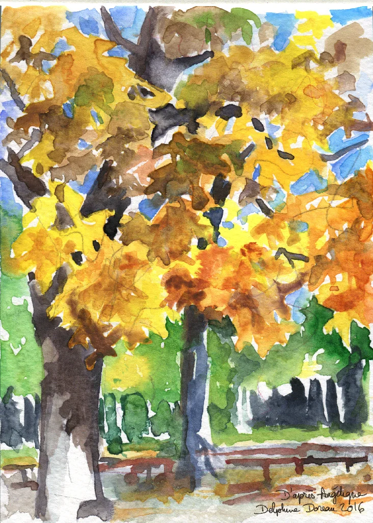 Dessiner un arbre préféré, c'est un peu les charentaises de lusque pour le watercoloriste, un petit bonheur. J'en suis presque à vous supplier de bien vouloir m'envoyer des photos du Luco, s'il vous plait, avec des arbres en premier plan, ho joie.