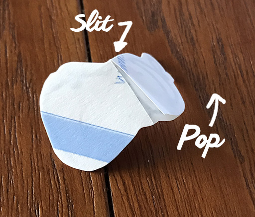 Zip, in the back. I found myself a bit silly to buy such a specialized tool, but I reach for it all the time. So yes, a little slit in the back like that the back paper separates in two when you bend it a little :