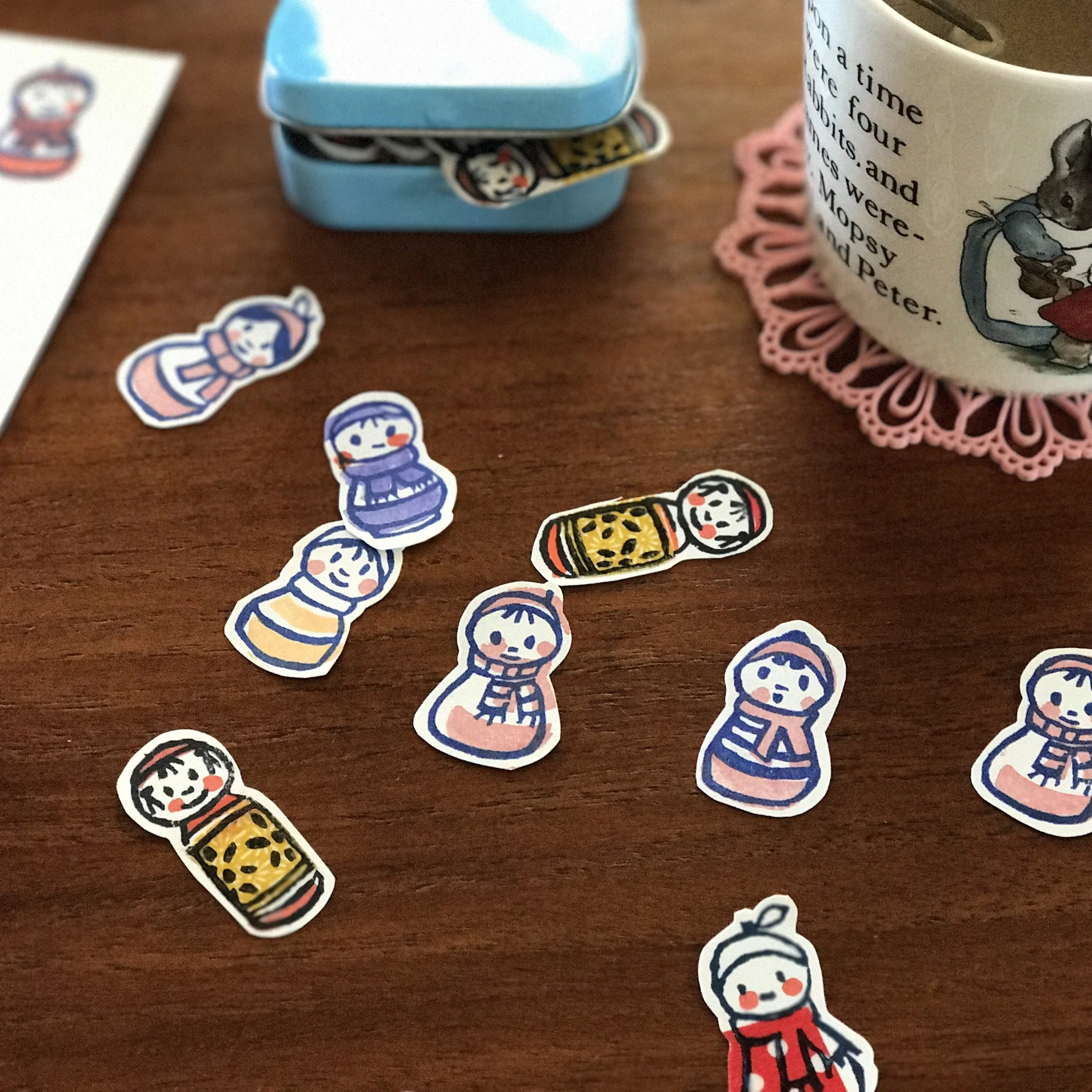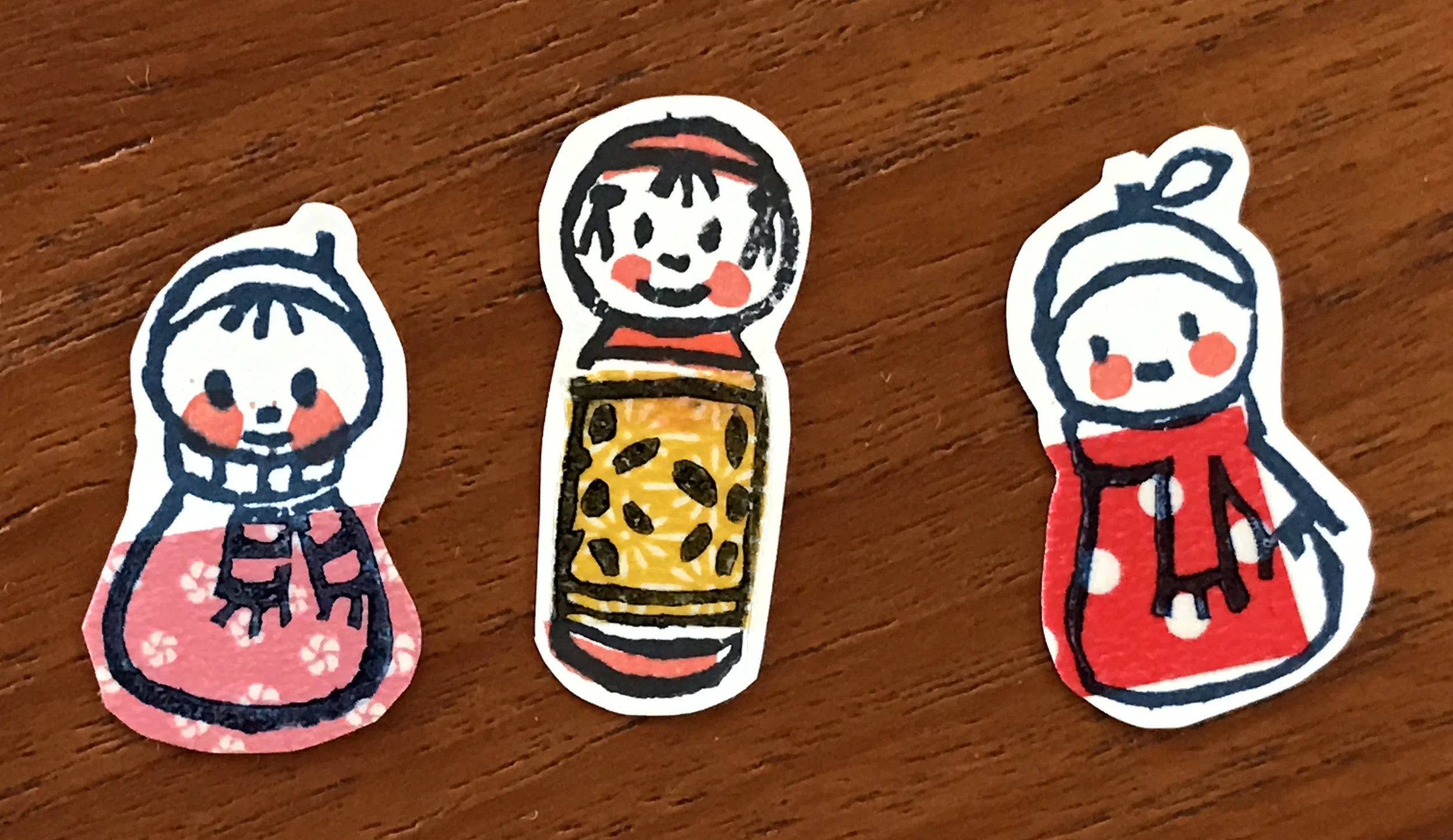 1. Make your own stamps (find the tutorial here) and print them on sticker paper.