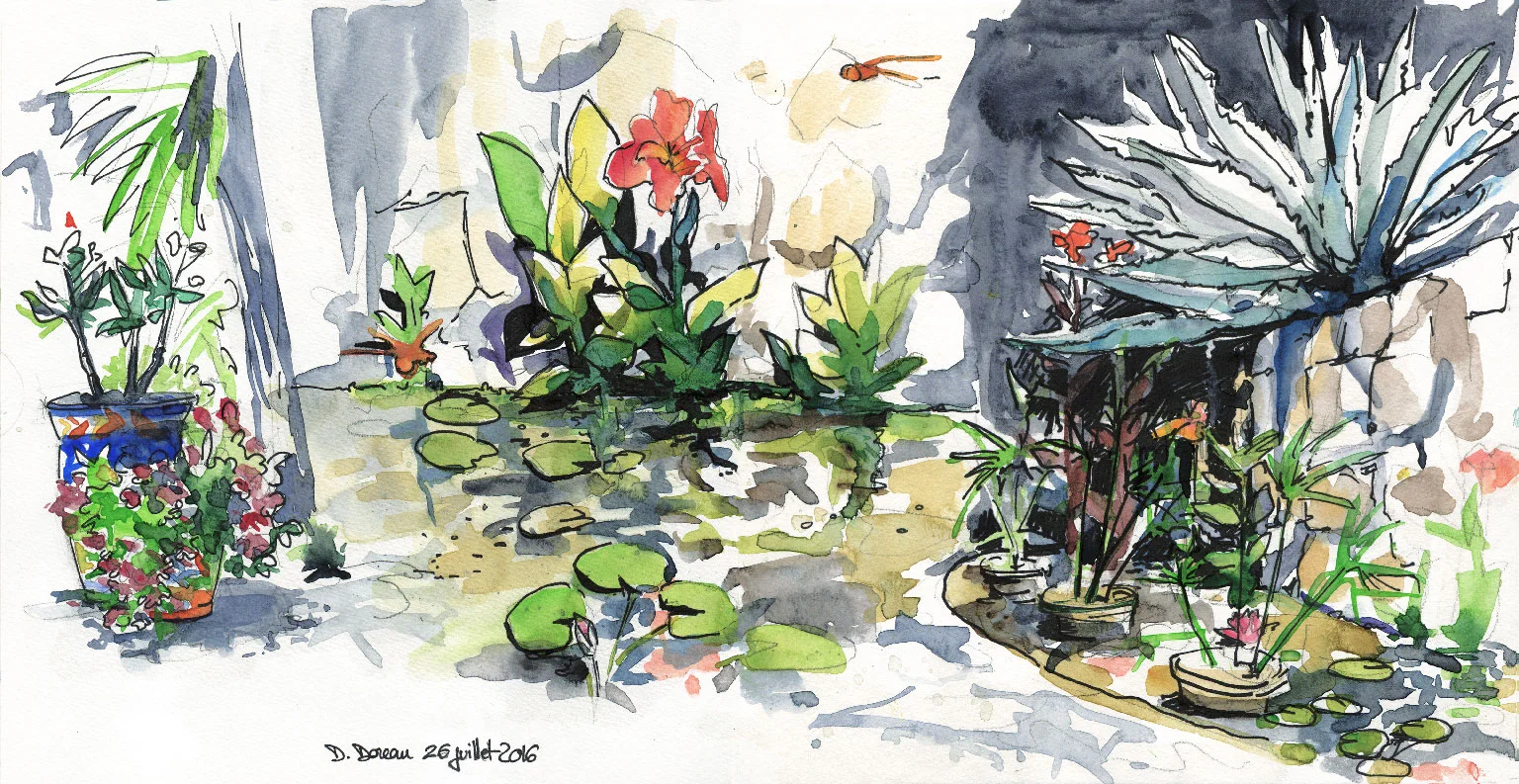 The light is sharper and brighter here than in Paris, hence the inked shadows. I wish I could have stayed longer in Paris, and paint more. I could spend a life painting in Paris.