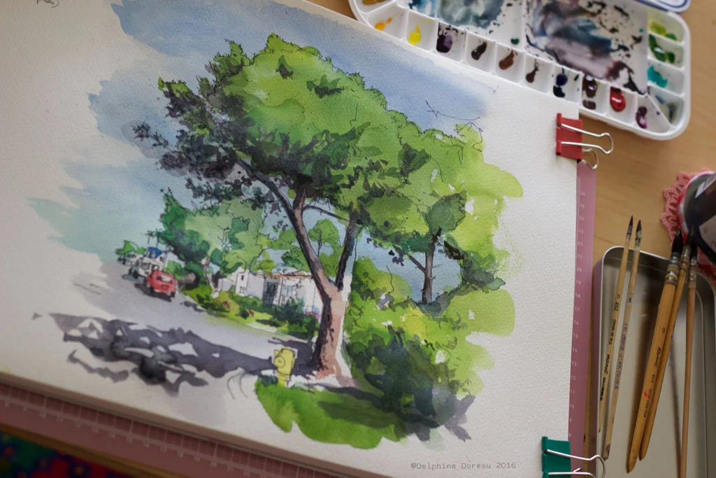 Je suis aussi beaucoup d'artistes sur Instagram, des gens de la communauté Urban Sketchers et d'autres artistes. Je suis particulièrement fascinée par Paul Wang dont la dextérité me bluffe, et je raffole de celui de Anne-Laure Jacquart dont le sens des couleurs me ravit. Elle va donner un atelier en Bretagne en Septembre, si j'habitais encore en France, c'est sur, j'irais. Je suis aussi des amies de longue date, que je ne liste pas ici, mais qui m'inspirent tous les jours.