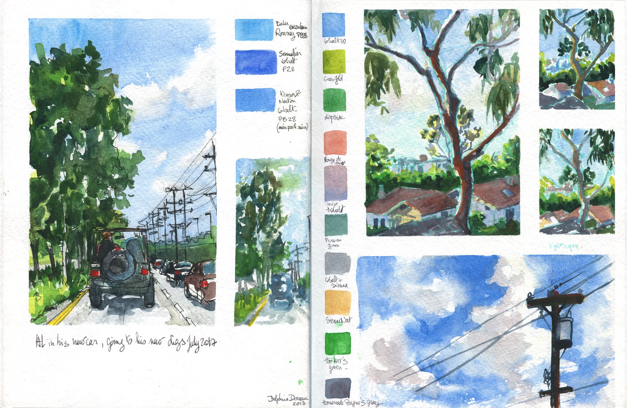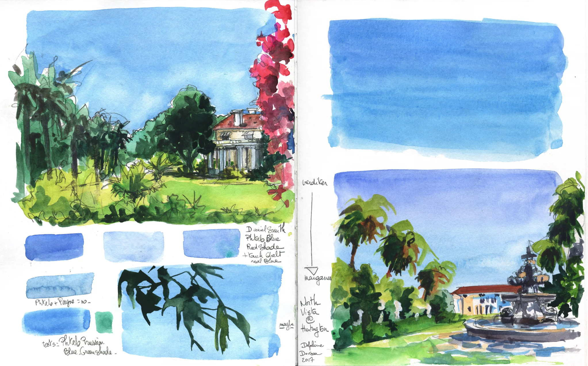 Blue sky tests at the Huntington Gardens, in San Marino, CA. This was before I understood that I really, really needed to wet my paper before painting skies.