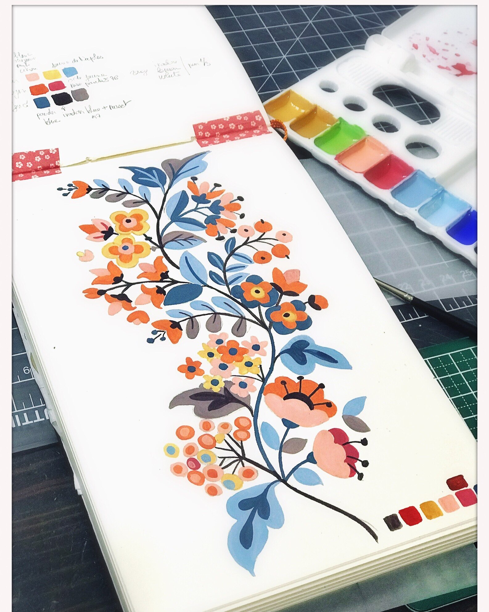 Working on a gouache palette